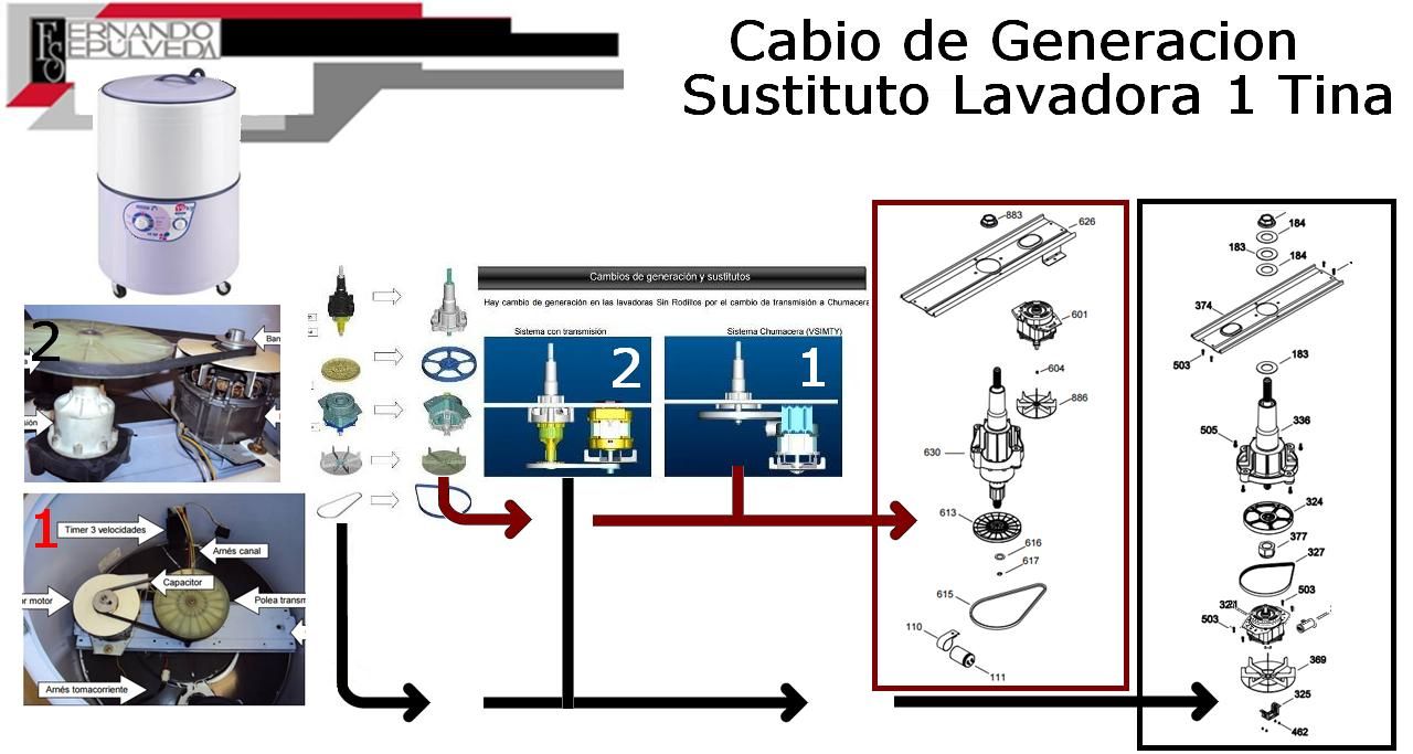 A continuacion se le presenta una imagen y osteriormente una liga de la mabe donde se ofrece el procedimiento facil del cambio de transmision antigua a moderna considerando las misma tina y faldon asi como algunos arneces y mangueras de desague  que tenia el diseño como el mismo agitador.